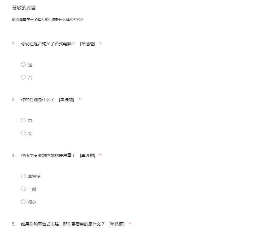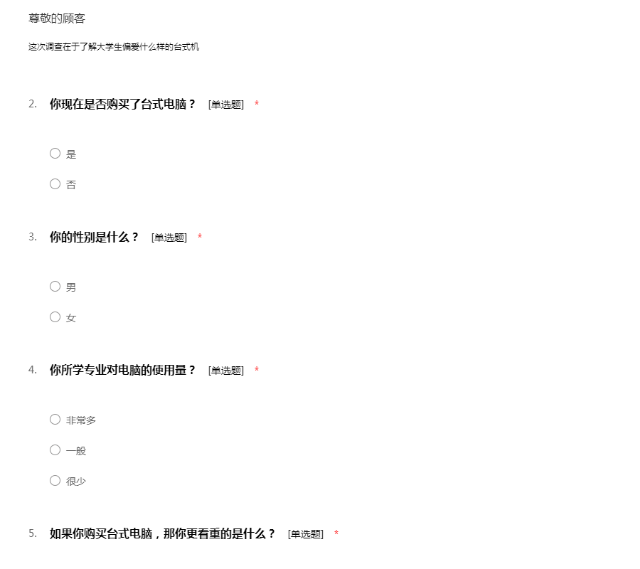 这次调查在于了解大学生偏爱什么样的台式机