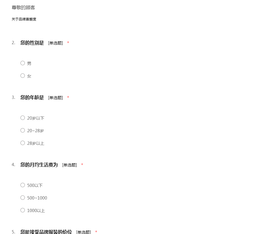 4. 您能接受品牌服装的价位?()