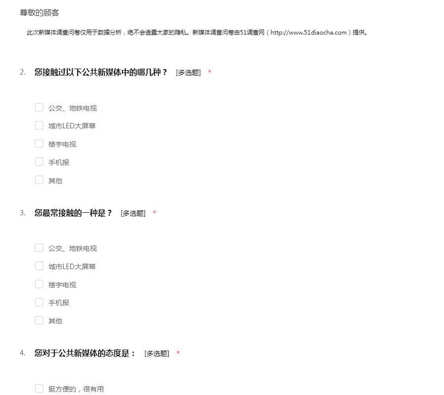 此次新媒体调查问卷仅用于数据分析,绝不会透露大家的隐私。新媒体调查问卷由51调查网(http://www.51diaocha.com)提供。