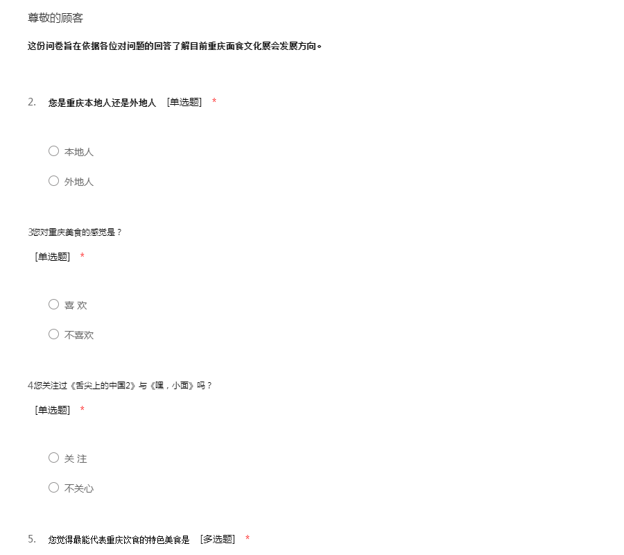 这份问卷旨在依据各位对问题的回答了解目前重庆面食文化展会发展方向。
