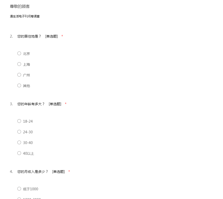 漫生活电子刊问卷调查