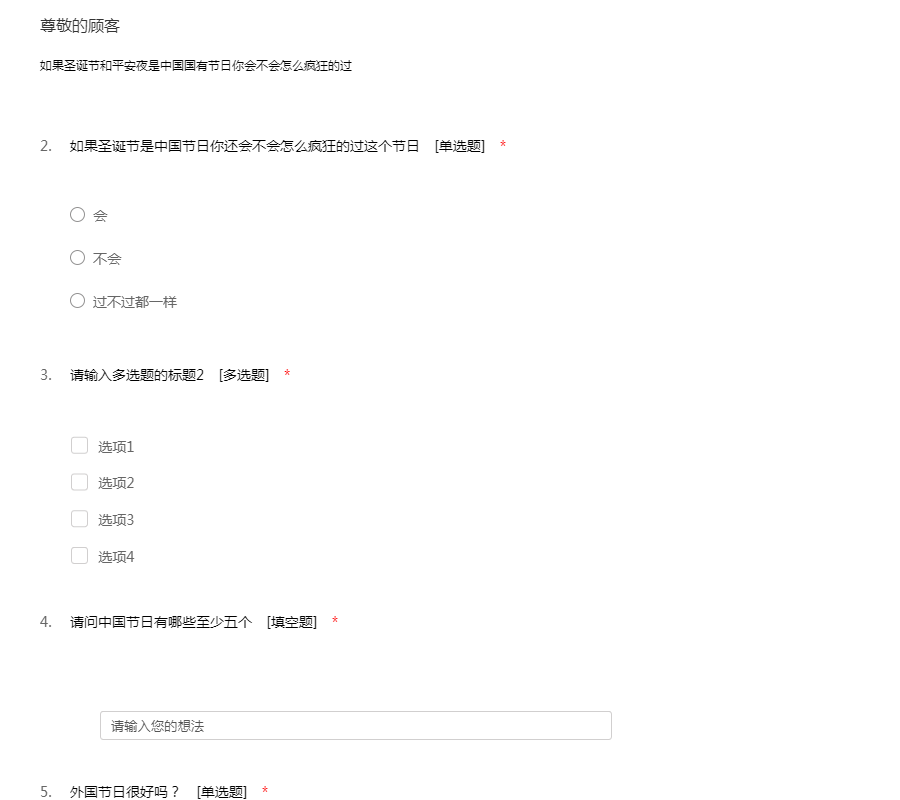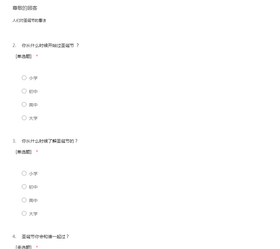 圣诞节调查问卷