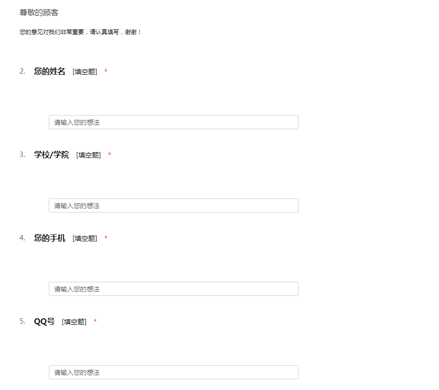 您的意见对我们非常重要,请认真填写,谢谢!