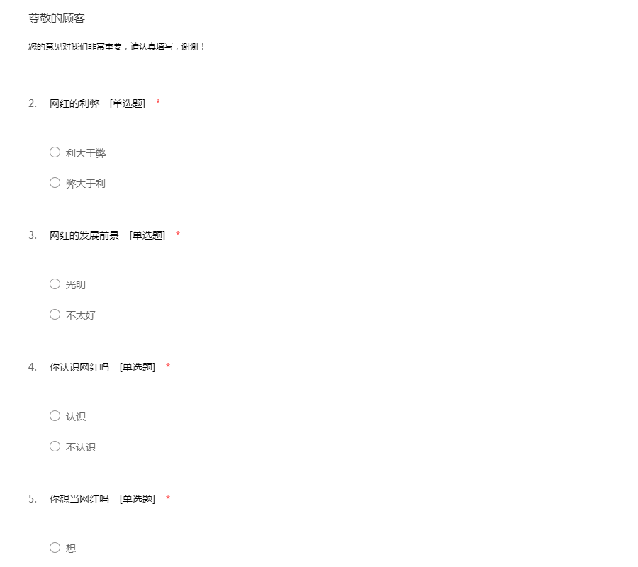 您好,这是小子作业调查问卷。抱歉打扰您的宝贵时间,再次敬礼,一路走到底