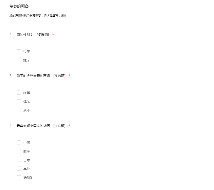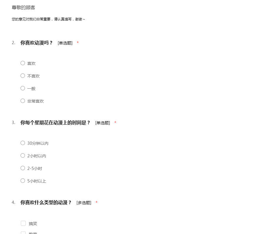 动漫调查问卷