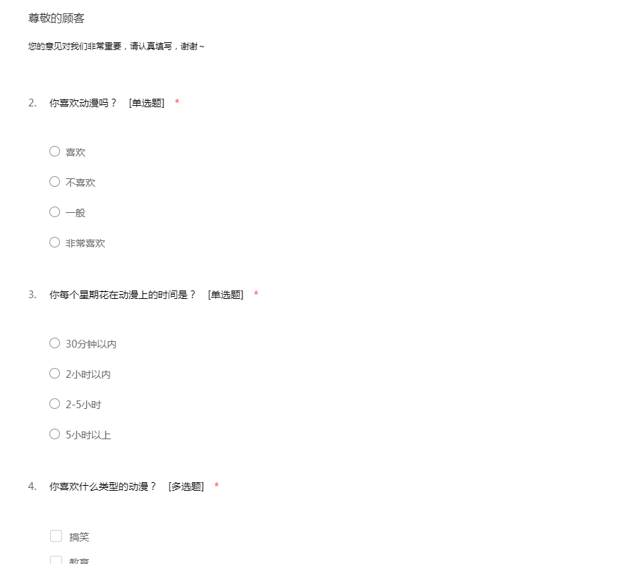 动漫问卷调查