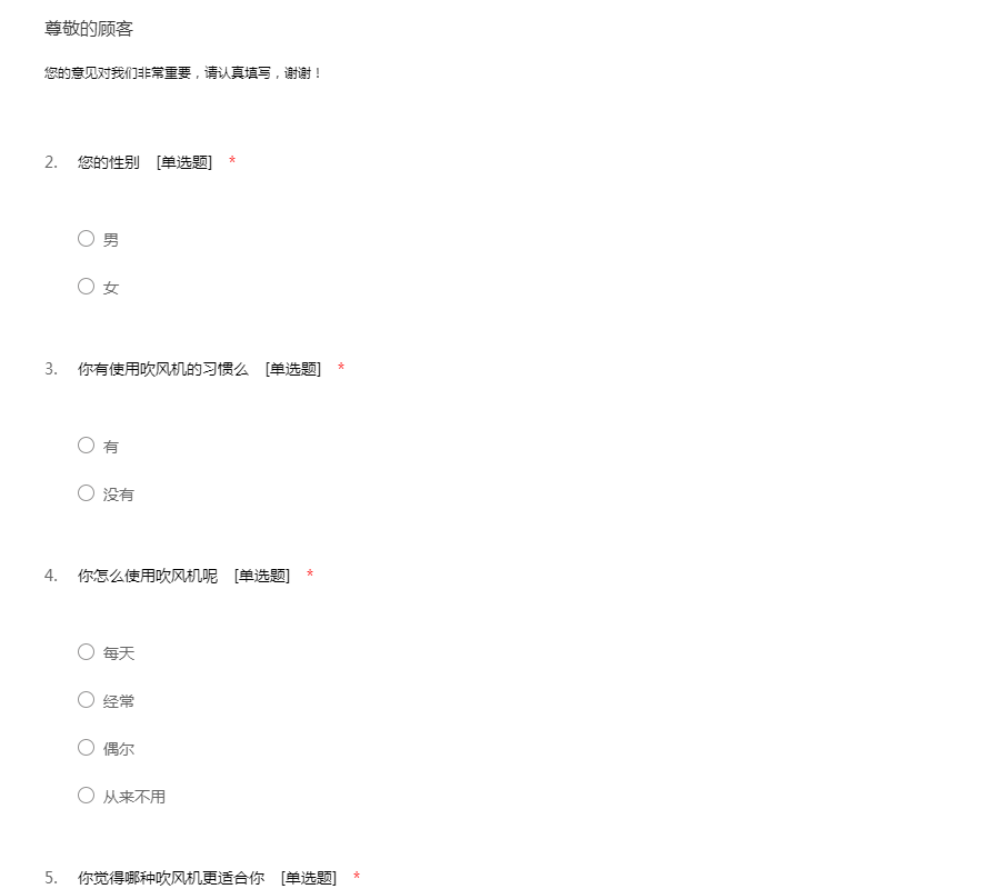吹风机问卷调查