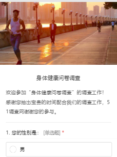 欢迎参加“身体健康问卷调查”的调查工作!感谢您抽出宝贵的时间配合我们的调查工作,51调查网谢谢您的参与。