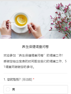 欢迎使用51调查网参加“中医养生保健调查问卷”的调查工作!感谢您抽出宝贵的时间配合我们的调查工作,51调查网谢谢您的参与。