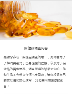 感谢您参与“保健品调查问卷”,此问卷为了了解消费者对于自身健康的理解,以及对于保健品的需求情况,调查所得的结果对您的工作和生活不会带来任何不良影响,请您根据自己的实际情况放心填写,51调查网感谢您的配合!