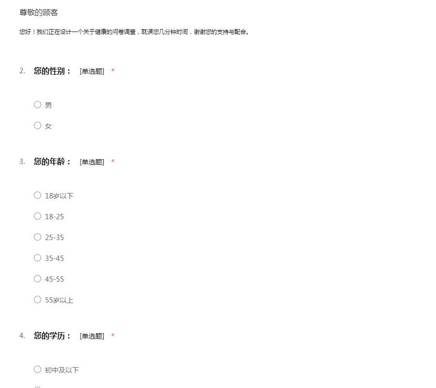 您好!我们正在设计一个关于健康的问卷调查,耽误您几分钟时间,谢谢您的支持与配合。