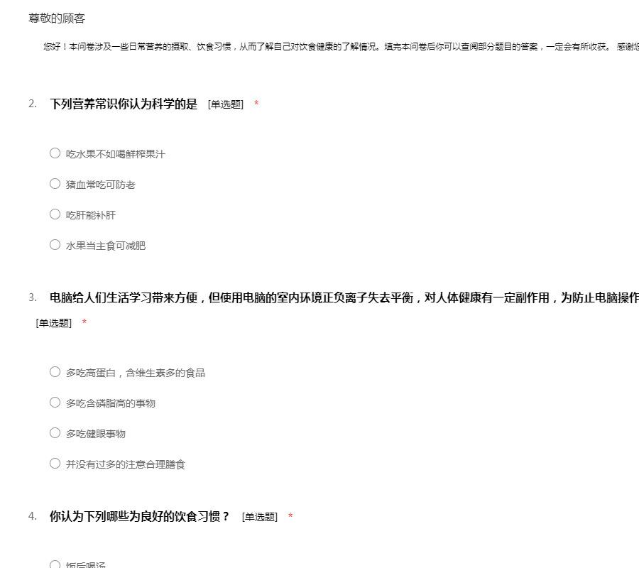 营养知识调查问卷