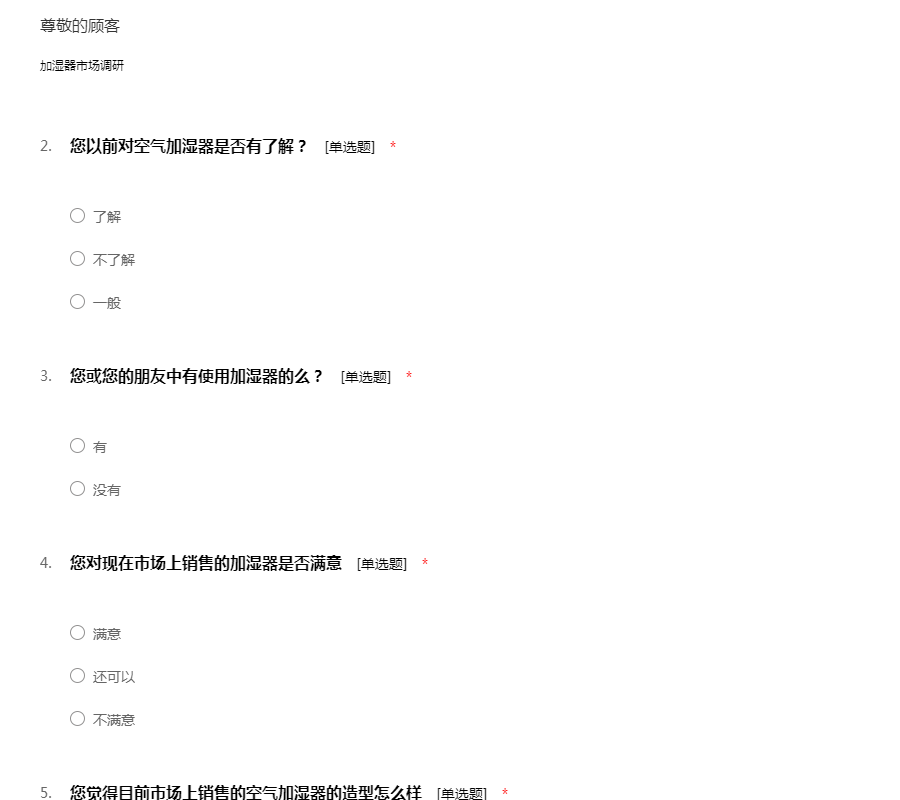 加湿器市场调查问卷