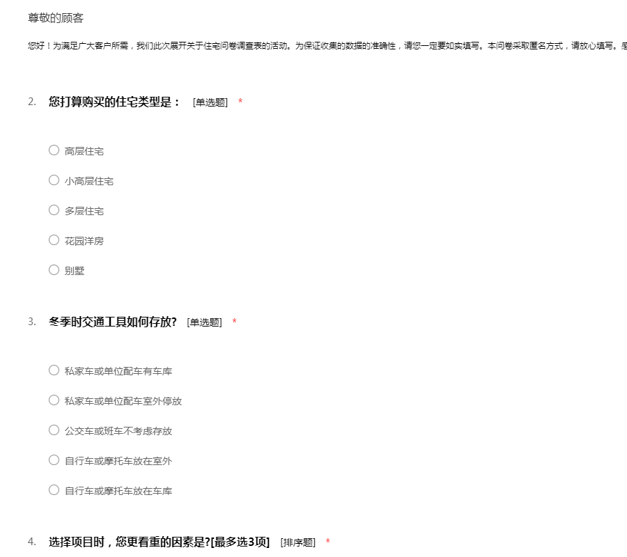 为了更好的了解我市居民购房的真实意向,我们在进行一项全市民住房状况及需求的市场调研。您的意见无所谓对错,都会对我们有很大帮助,希望您在百忙之中抽出一点时间协助我们完成这项调查。对您的帮助与支持表示感谢!