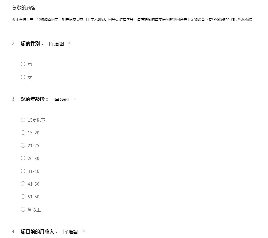 宠物调查问卷