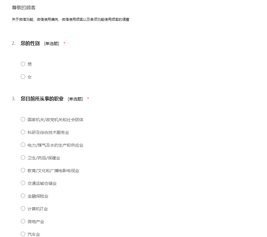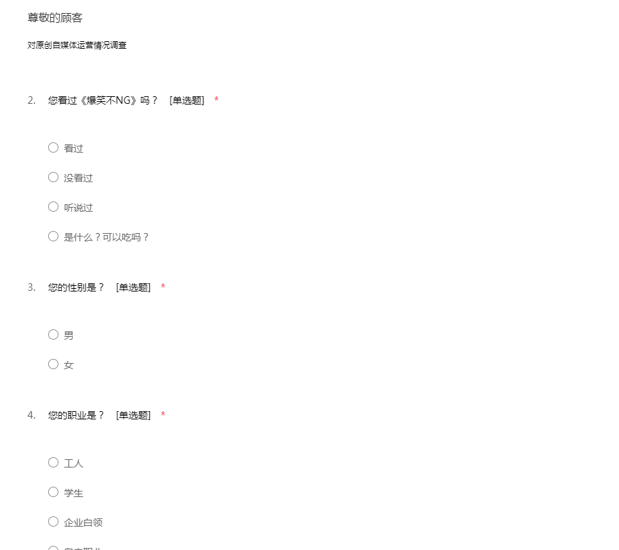 传媒行业问卷
