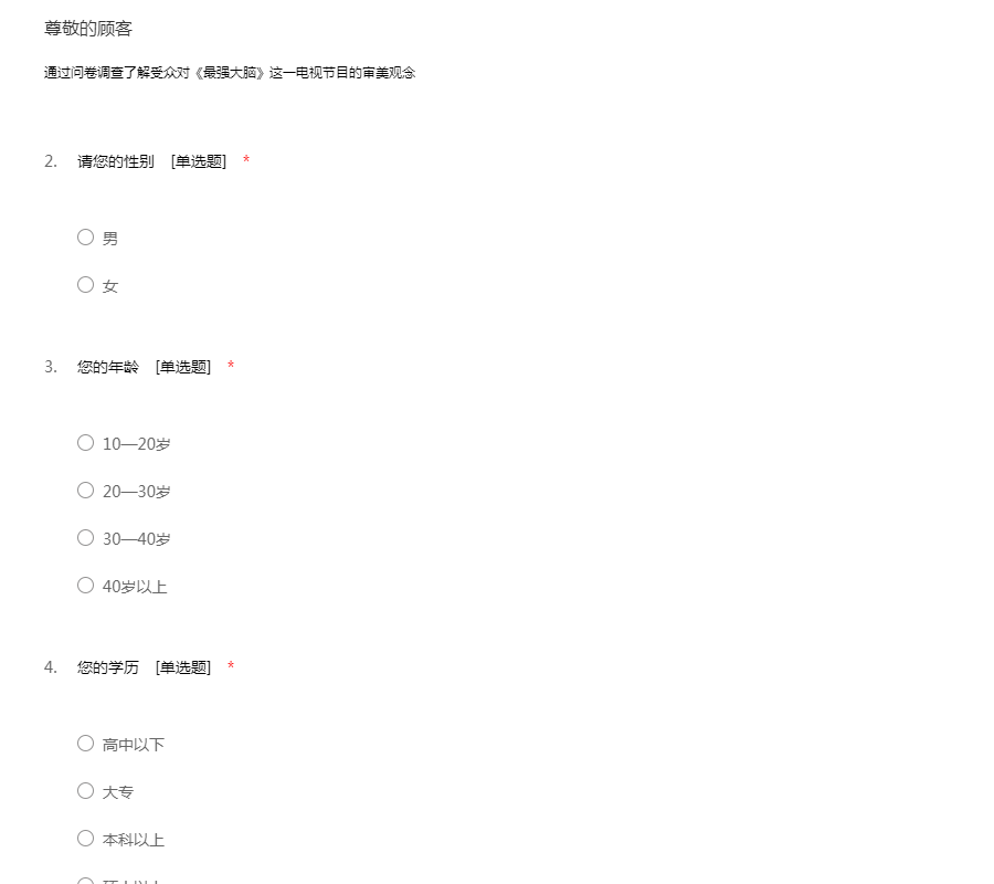 电视节目《最强大脑》受众审美分析调查问卷