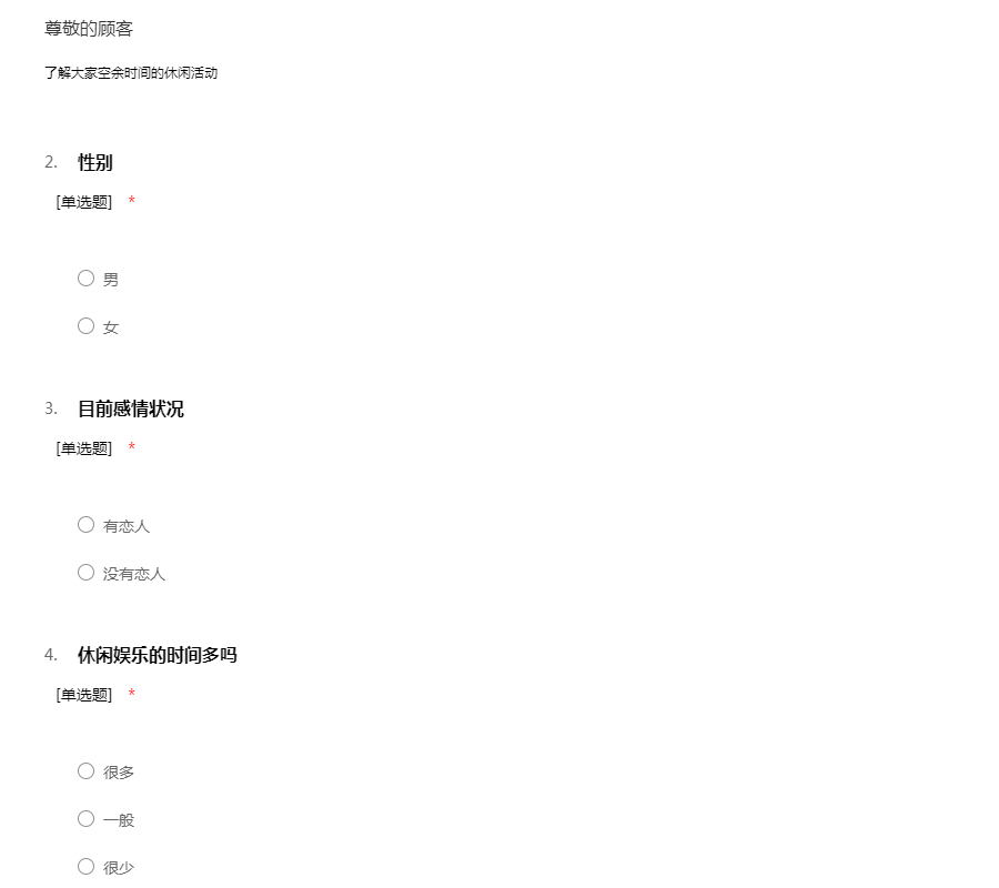 娱乐休闲活动调查