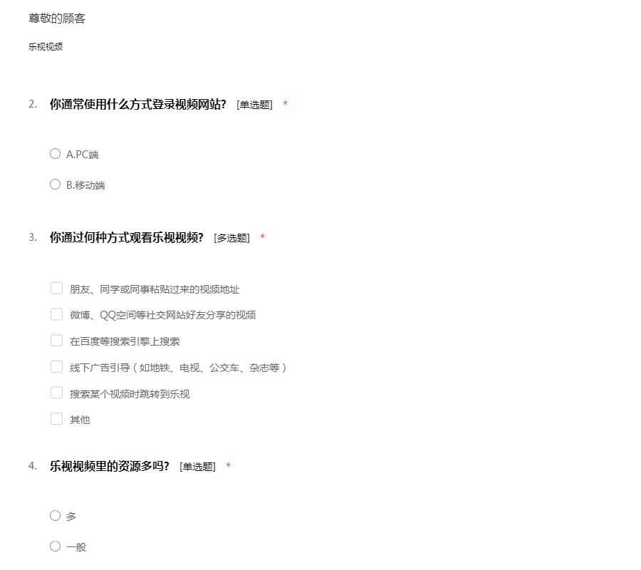 乐视视频问卷调查