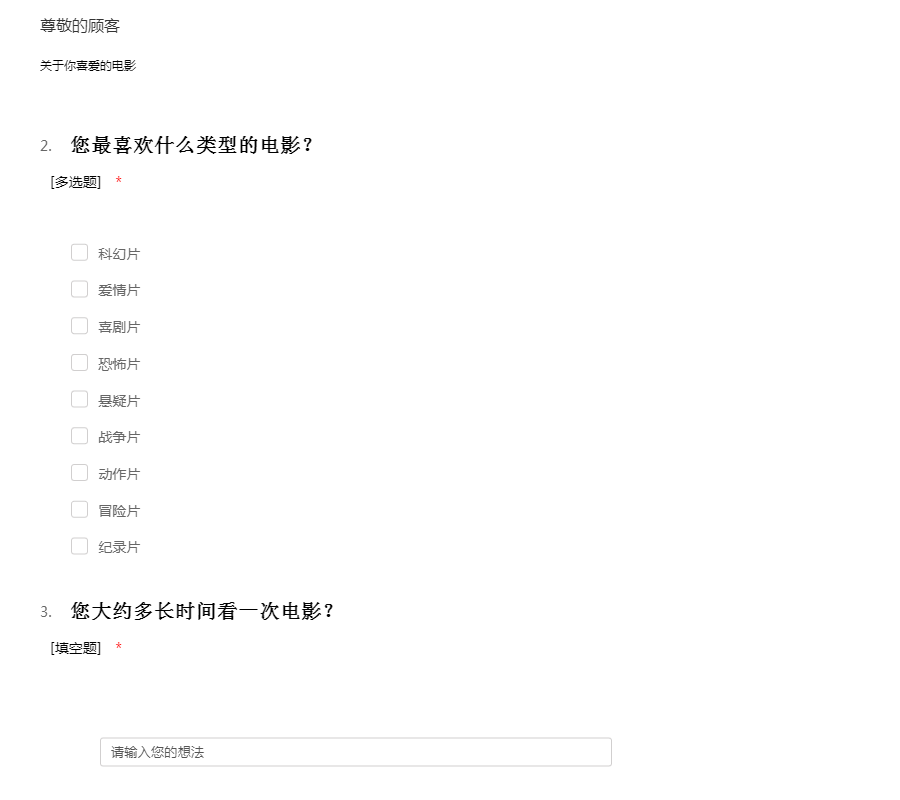 你好!感谢参与51调查网。下面是我们关于电影的调查问卷,不带有任何商业目的!希望亲爱的朋友,你能抽出几分钟时间为我们答这份问卷,十分感谢!