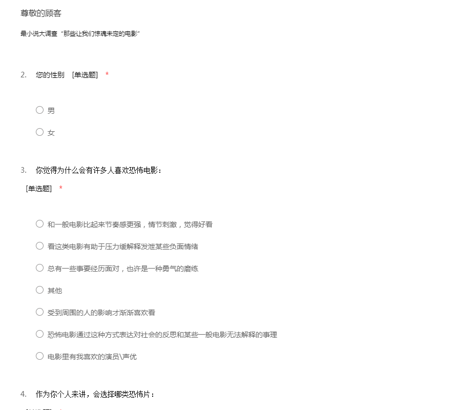 玄幻小说问卷是为了调查读者对玄幻小说的阅读习惯,我们保证不会泄露您的个人信息,请放心填写。51调查网(我要调查网)谢谢您的参与。