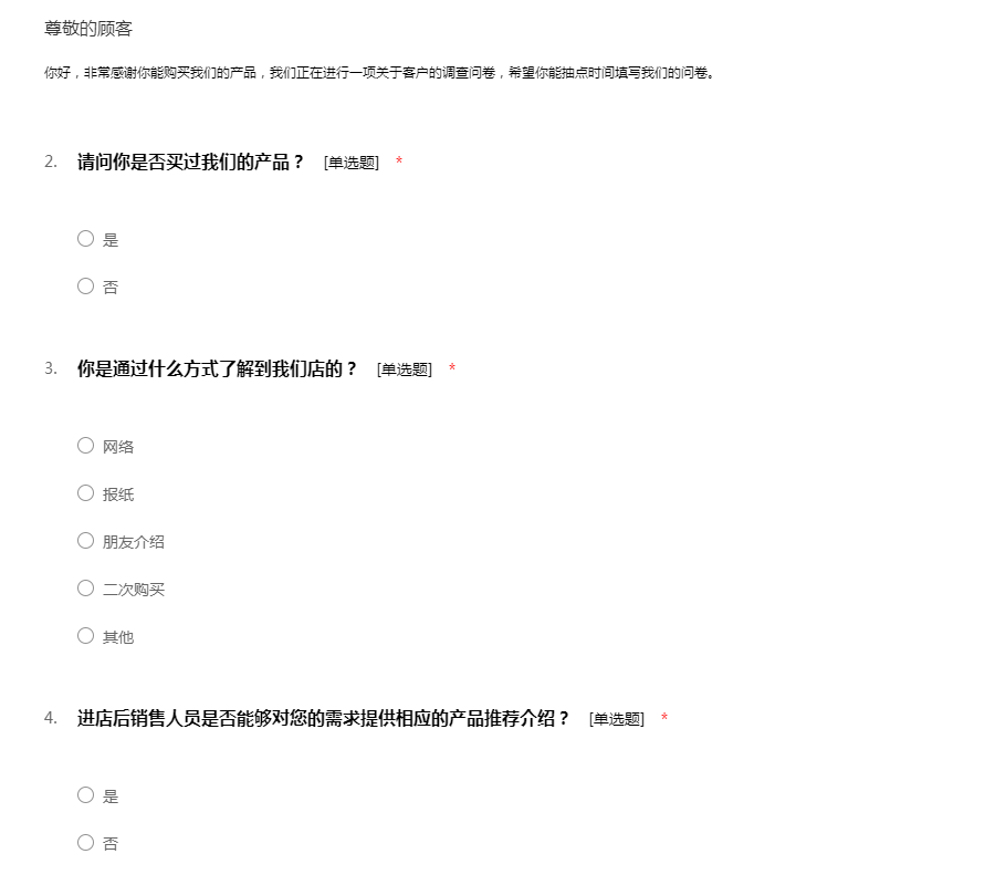 您好,耽误您几分钟时间,很感谢您能在百忙之中接受我们的调查,此次调查是关于百货大楼销售活动调查问卷,很感谢您的支持与理解回答下面的几个问题