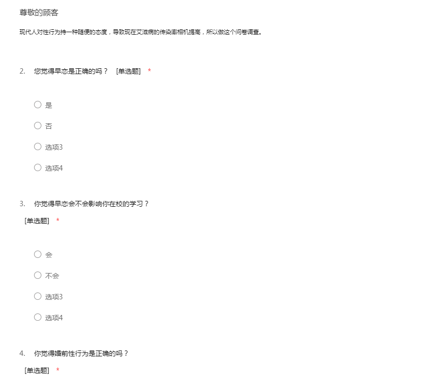 现代人对性行为持一种随便的态度,导致现在艾滋病的传染率相机提高,所以做这个问卷调查。