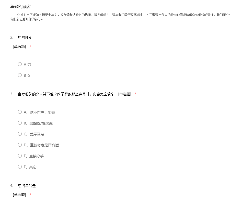 婚恋价值观调查问卷