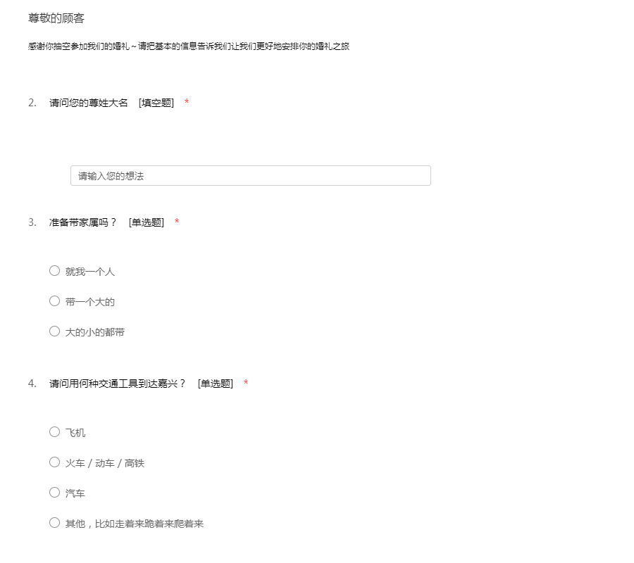 感谢你抽空参加我们的婚礼~请把基本的信息告诉我们让我们更好地安排你的婚礼之旅