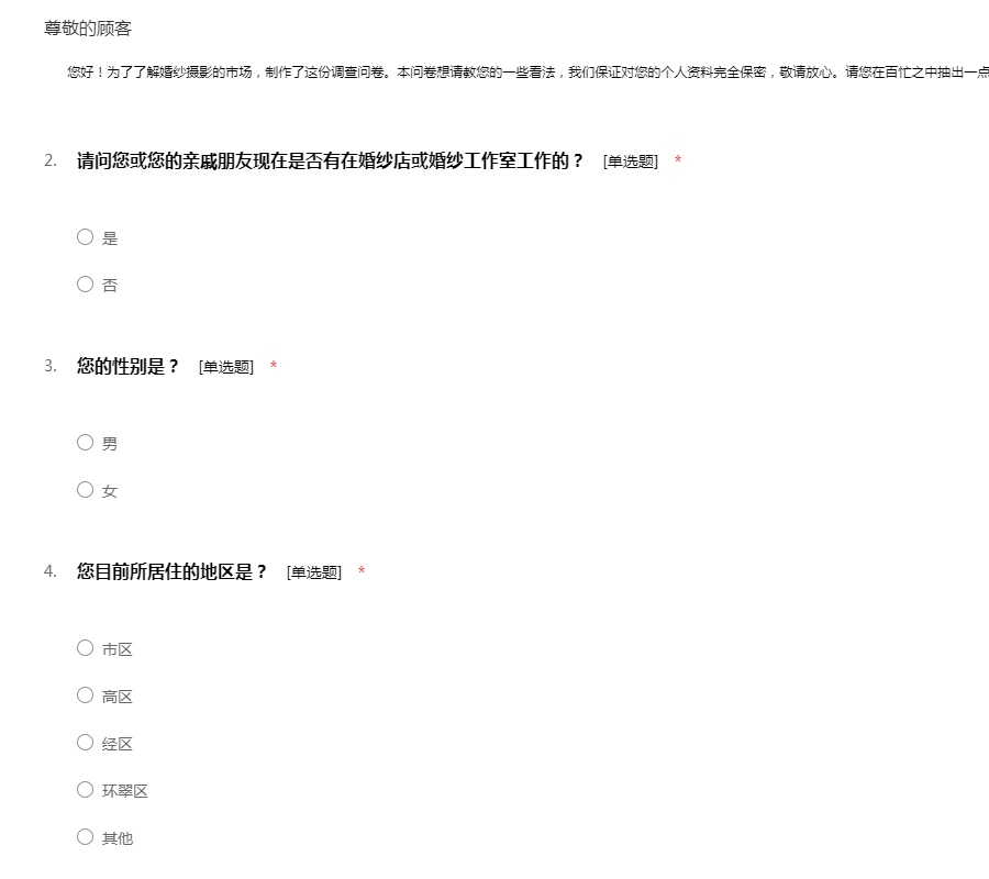 婚纱摄影市场调查问卷