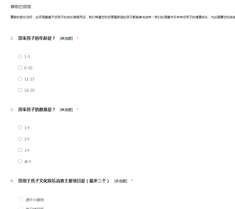 尊敬的家长您好,此项调查基于您孩子的成长路程而设,我们希望您和您周围家庭的孩子都能参与进来!我们的调查关乎未来您孩子的健康成长,为此需要您如实填写以下有关问题。