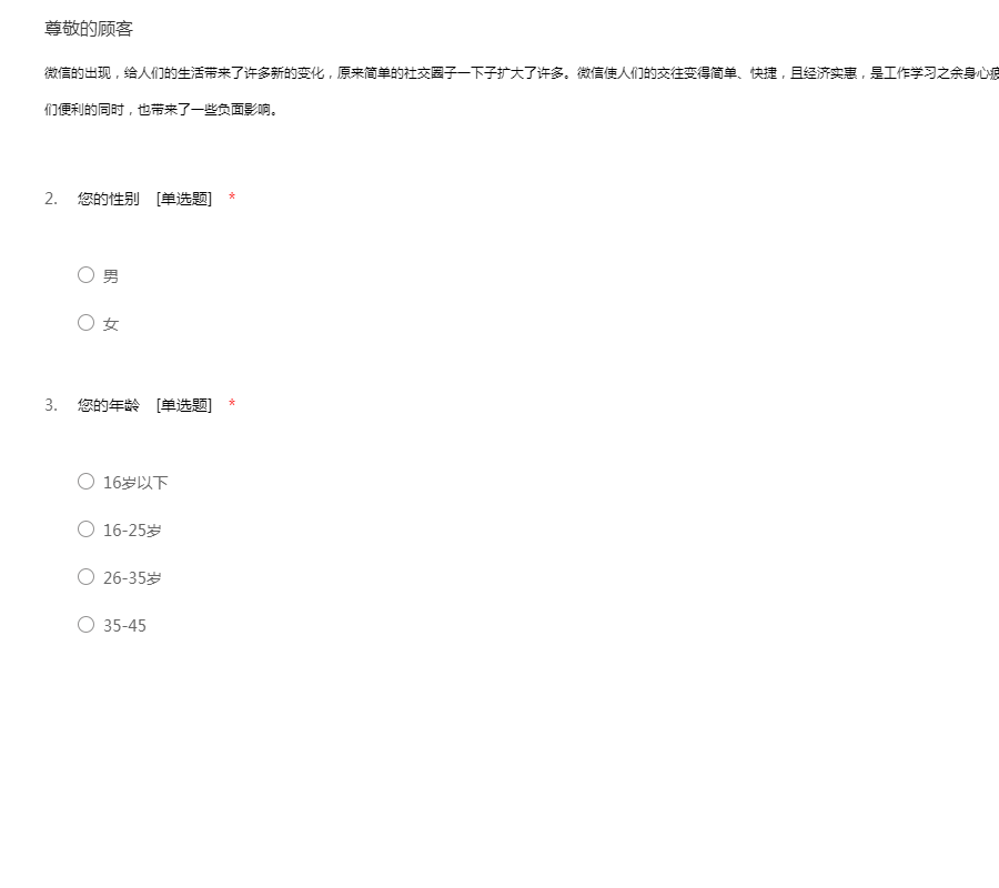 此问卷是为了学院思政理论课程实践教学的作业提供数据资料,调查微信朋友圈对不同人群生活方式的影响,不涉及隐私,请放心填写,谢谢!