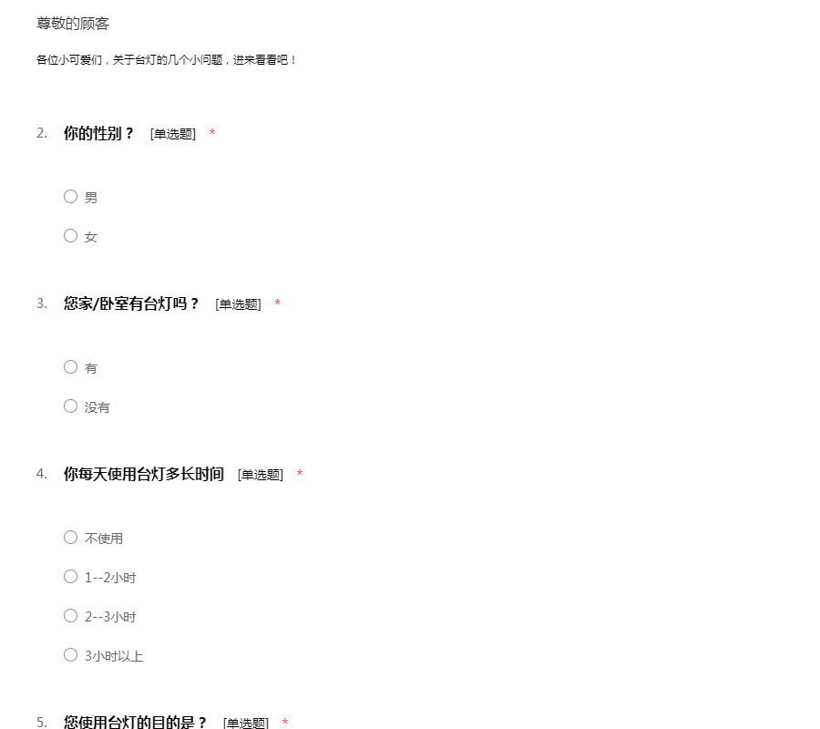 关于台灯的调查问卷