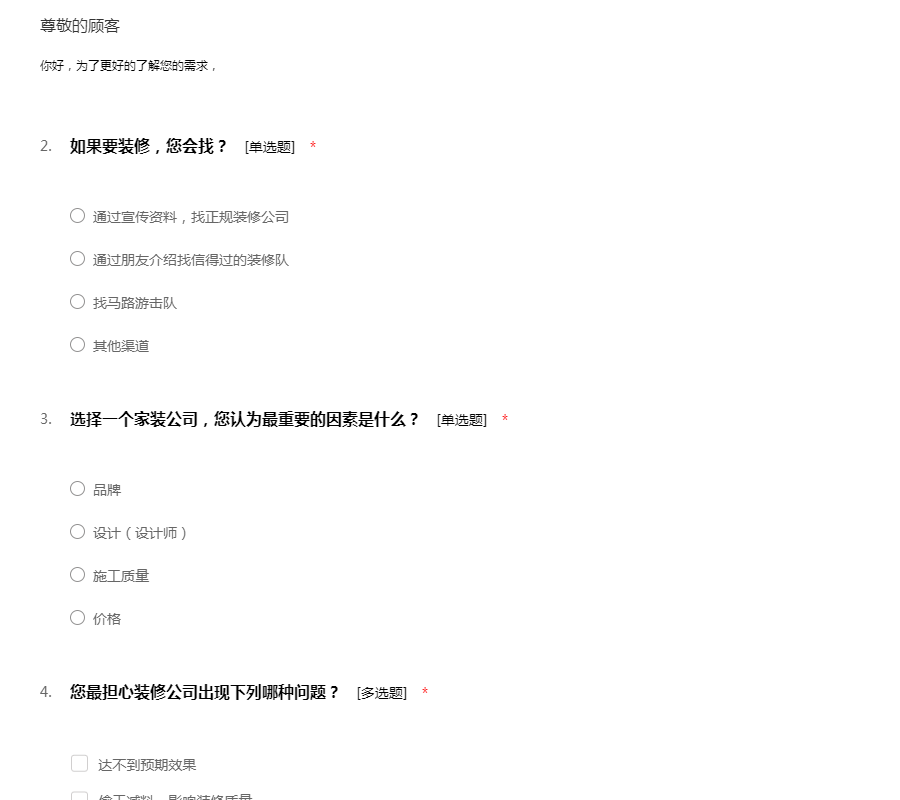 装修调查问卷
