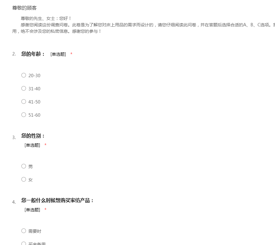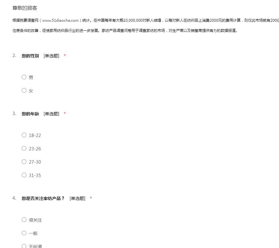 欢迎参加“家居生活用品调查问卷”的消费者调查工作!感谢您抽出宝贵的时间配合我们的调查工作,51调查网谢谢您的参与。
