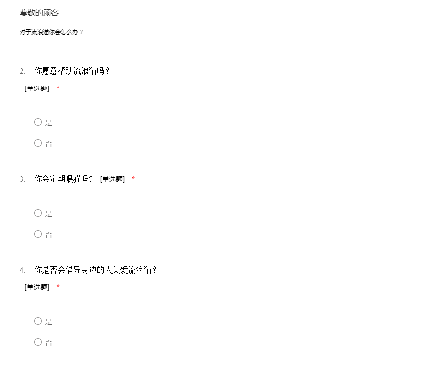 关于流浪猫的调查问卷