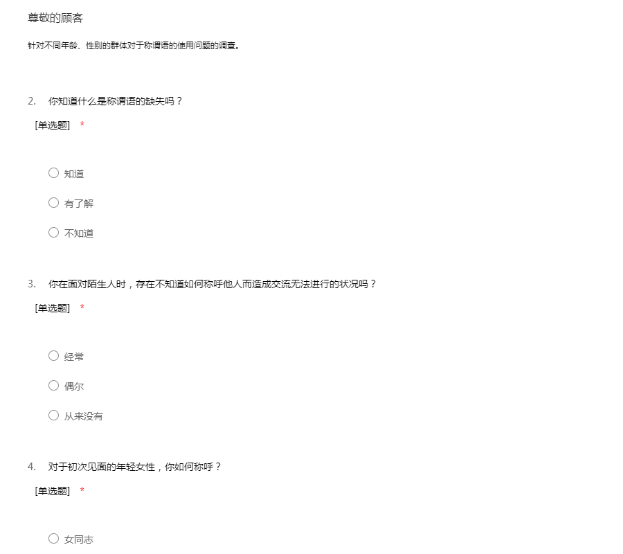 针对不同年龄、性别的群体对于称谓语的使用问题的调查。