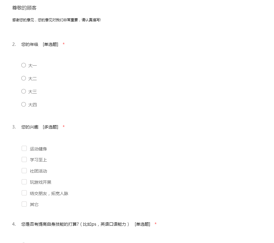 俱乐部调查问卷