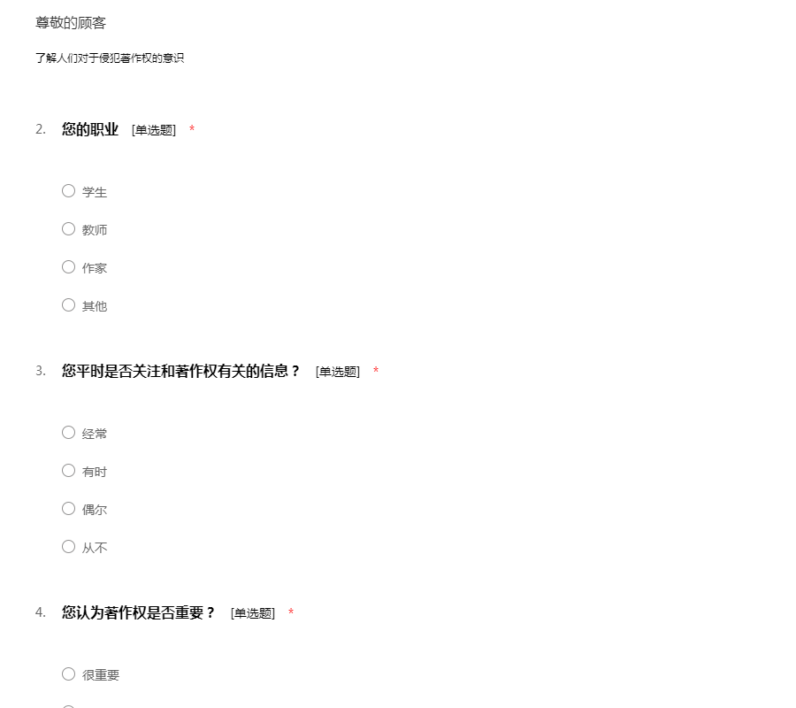关于对著作权认识问题的调查问卷
