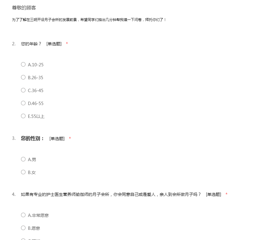开办月子会所调查问卷