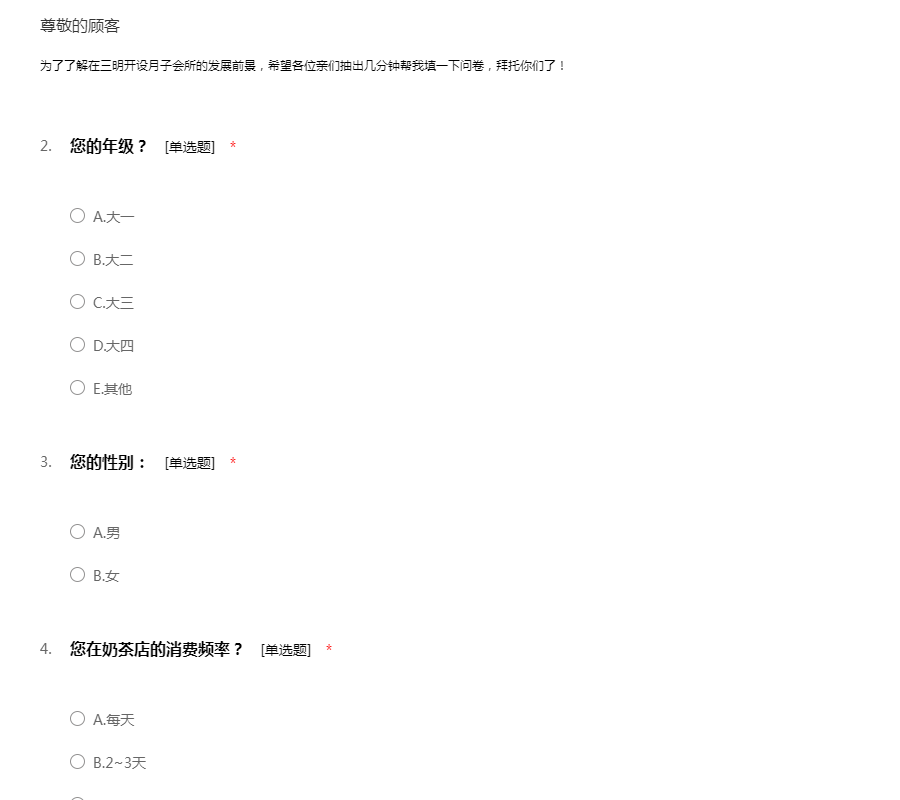 为了了解在三明开设月子会所的发展前景,希望同学们抽出几分钟帮我填一下问卷,拜托你们了!