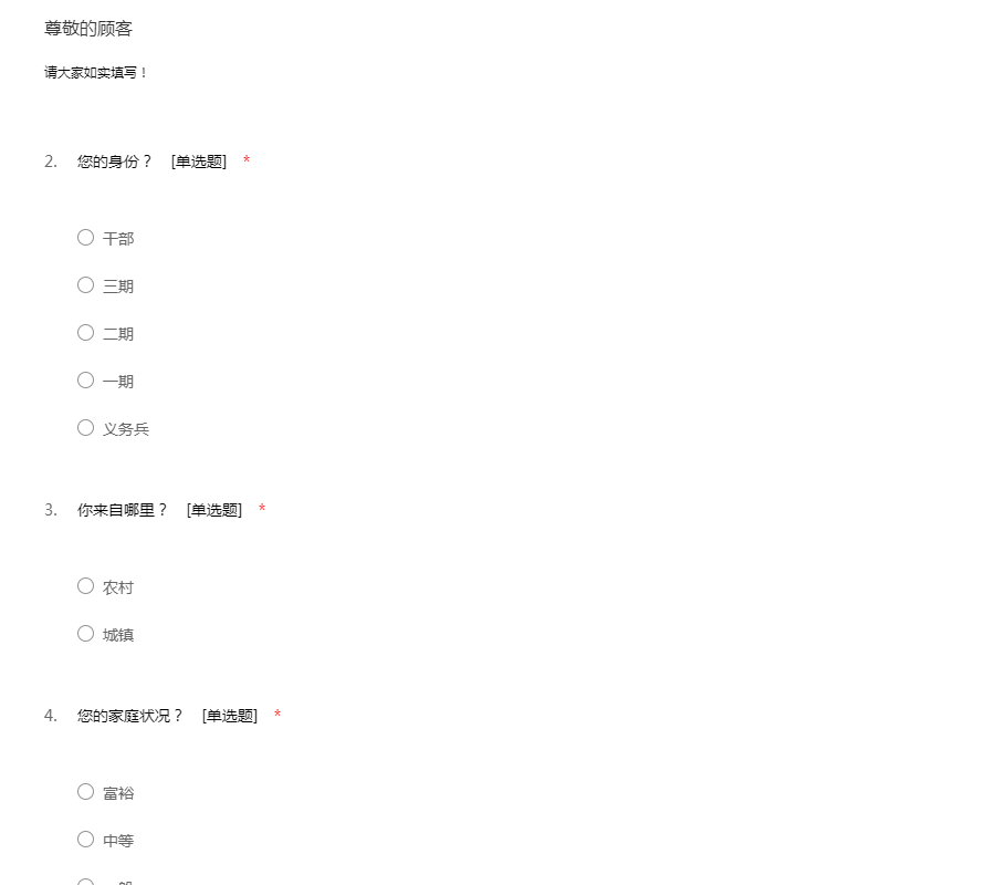 请大家如实填写!
