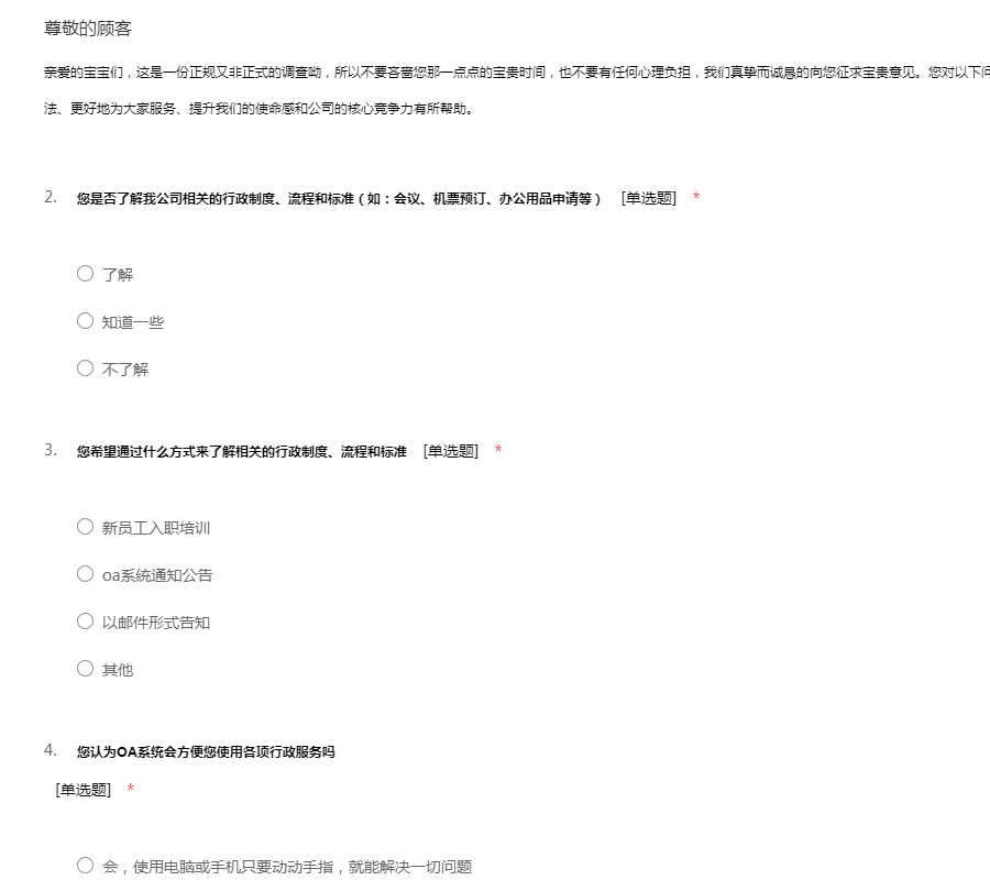 行政部工作调查问卷