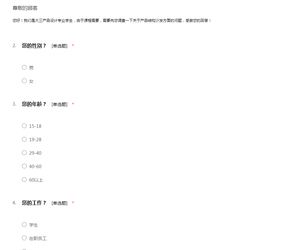 产品结构设计-沙发 调查问卷