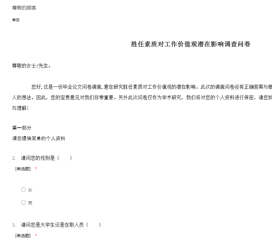 胜任素质对工作价值观潜在影响调查问卷