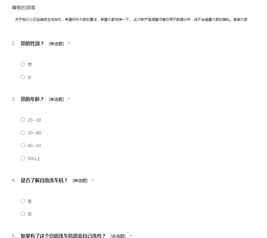 关于我们小区安装自主洗车机,希望听听大家的看法,希望大家支持一下。 此次新产品调查问卷仅用于数据分析,纯不会透露大家的隐私。谢谢大家