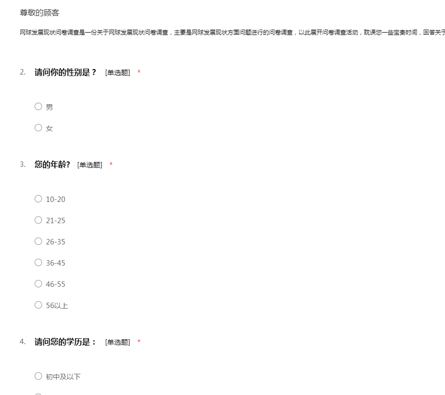 网球发展现状问卷调查是一份关于网球发展现状问卷调查,主要是网球发展现状方面问题进行的问卷调查,以此展开问卷调查活动,耽误您一些宝贵时间,回答关于网球发展现状问卷调查,谢谢您的合作。