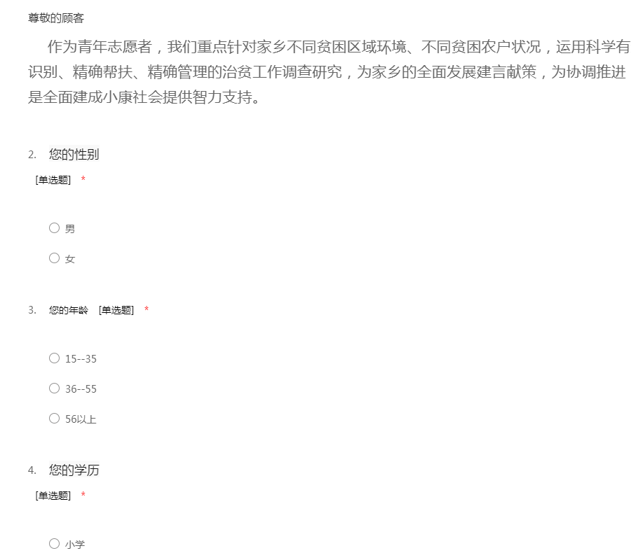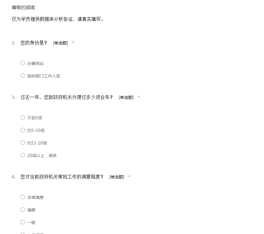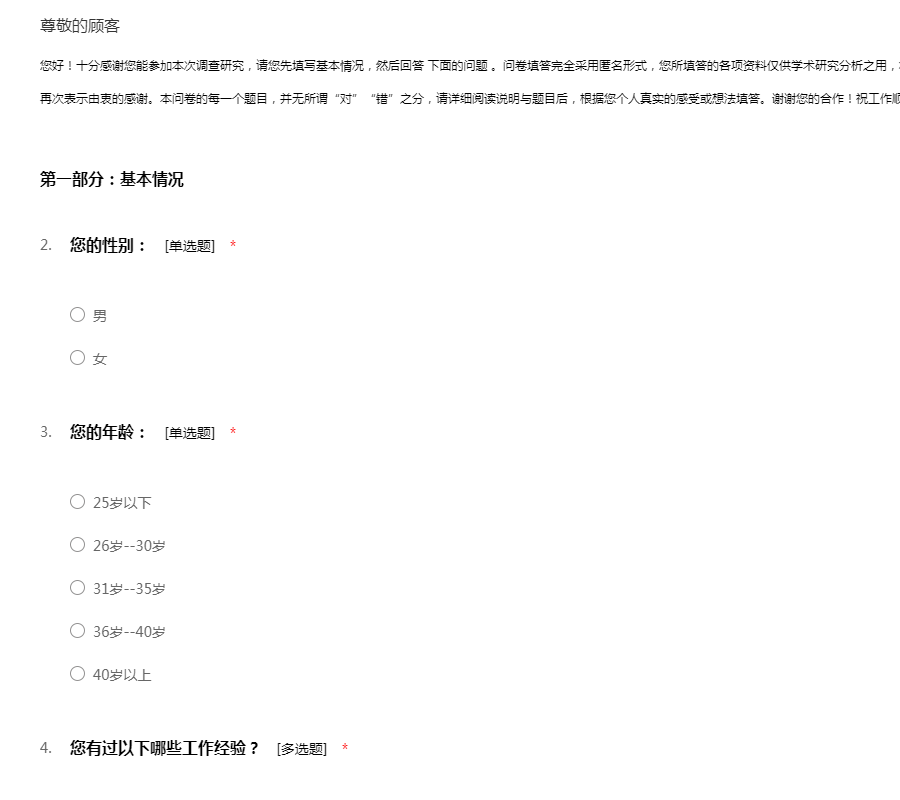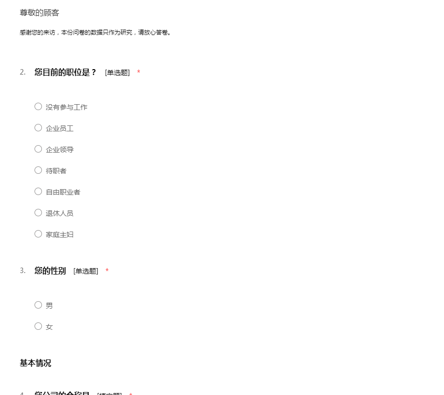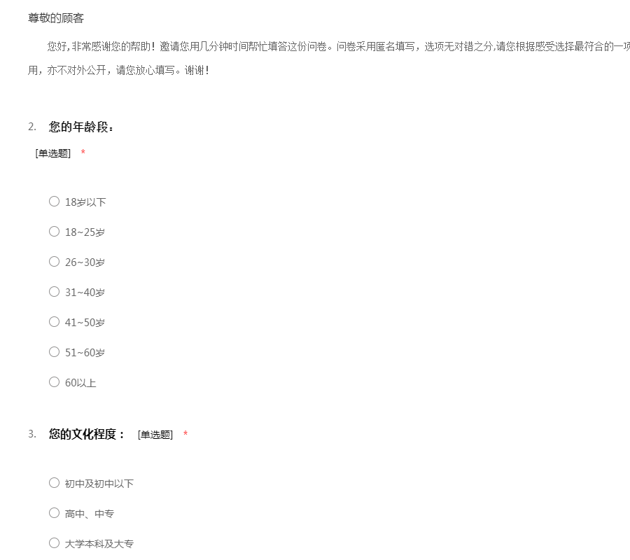 感谢您的来访,本份问卷的数据只作为研究,请放心答卷。
