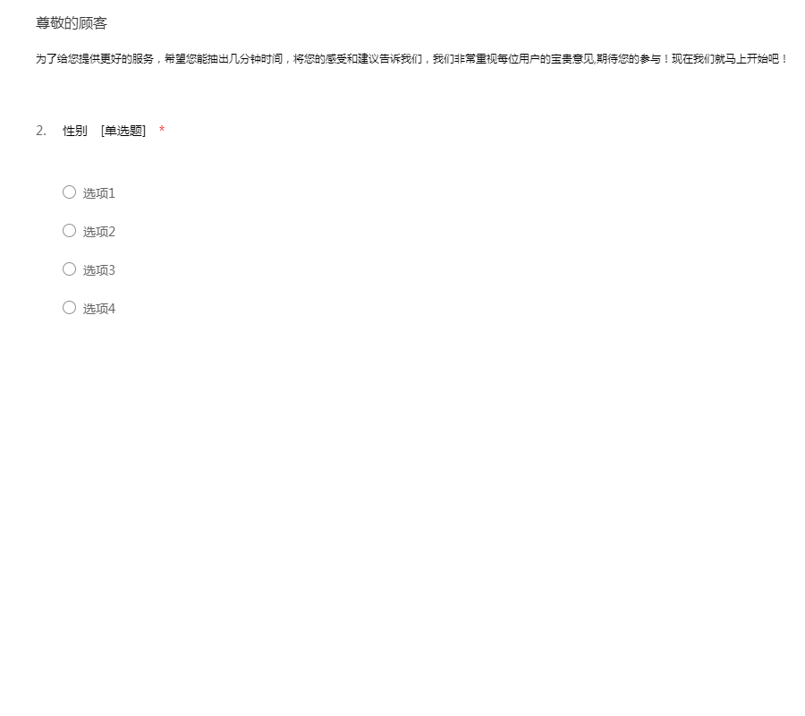 为了给您提供更好的服务,希望您能抽出几分钟时间,将您的感受和建议告诉我们,我们非常重视每位用户的宝贵意见,期待您的参与!现在我们就马上开始吧!