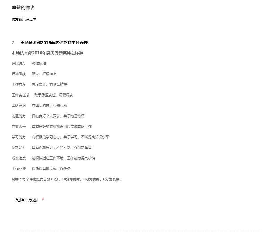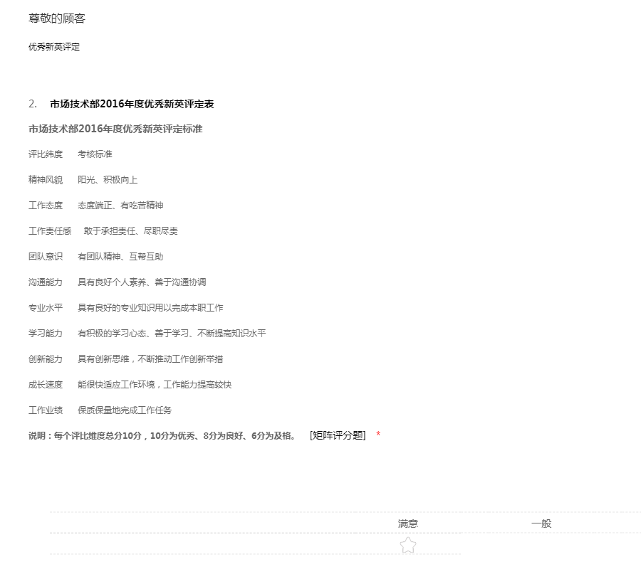 市场技术部2016年度优秀新英评定表